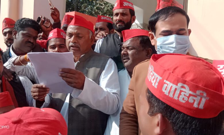 बालपुर /गोंडा । विधान सभा कटरा बाजार के पूर्व विधायक बैज नाथ दूबे अपने सैकड़ो सपा कार्यकर्ताओं के साथ जिला अधिकारी कार्यालय का घेराव करके राज्यपाल को सम्बोधित ज्ञापन जिला अधिकारी के माध्यम से भेजवाया है। सुबह से ही सपा कार्यकर्ता पूर्व विधायक के आवास पर जुटने लगे। उन्होंने अपने आवास से जिला अधिकारी कार्यालय तक का विरोध मार्च निकालकर बिरोध प्रदर्शन किया। उन्होंने ज्ञापन के माध्यम से बताया कि धान क्रय केंद्र पर किसानों के धान की खरीद नही हो रही है। जिससे किसानों को अपना धान बिचवलियो को आधे दाम पर बेचना पड़ रहा है। बुवाई का समय चल रहा डीएपी व यूरिया की काला बाजारी हो रही है। खाद के लिय किसान भटक रहे। बजाज व खुदरकी चीनी मिल पर किसानों का हजारो करोड़ रुपया बकाया है। उसे तत्काल भुगतान कराया जाये। सत्ता पक्ष के इशारे पर पोलिंग बूथ बदला जा रहा है। जिससे जाति विशेष ले लोगो को मतदान करने से रोका जाये। बी यल ओ को धमकाया जा रहा है। उन्होंने कहा यदि हमारी मागो का निस्तारण नही होता है तो समाजवादी पार्टी सड़क पर आंदोलन करने के लिए मजबूर हो जायेगी।इस दौरान सपा के जिला अध्यक्ष राम स्वरूप यादव उर्फ पप्पू यादव, बिधान सभा अध्यक्ष वकार खां,राम अवध बाबा, अशोक तिवारी, अर्जुन बाबा, संजय शर्मा, कुलदीप मनि श्रीवास्तव, रामकुमार शुक्ल,राहुल तिवारी, सुमित तिवारी सहित अन्य लोग मौजूद रहे।