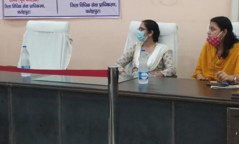 फतेहपुर : जिला विधिक सेवा प्राधिकरण फतेहपुर के तत्वाधान में अशोक कुमार सिंह तृतीय जनपद न्यायाधीश /अध्यक्ष जिला विधिक सेवा प्राधिकरण फतेहपुर जिला विधिक सेवा प्राधिकरण फतेहपुर के दिशा निर्देशन में तहसील सदर फतेहपुर के सभागार में विधिक साक्षरता एवं विधिक जागरूकता सहायता कार्यक्रम का आयोजन सचिव पूर्णकालिक जिला विधिक सेवा प्राधिकरण फतेहपुर द्वारा किया गया । विधिक साक्षरता एवं विधिक जागरूकताध् सहायता कार्यक्रम में तहसीलदार सदर ने उपस्थित समस्त कानूनगो एवं लेखपाल आदि को उनके कार्य एवं दायित्व ग्राम स्तर पर गरीब एवं असहाय व्यक्तियों को उनके अधिकारों को अपने स्तर से जागरूक कर उनको शासन द्वारा प्रदान की जाने वाली कल्याणकारी योजनाओं से अवगत कराकर लाभान्वित कराने हेतु व्यापक प्रचार-प्रसार किए जाने हेतु बल दिया गया । इसी क्रम में लेखपाल संघ शाखा फतेहपुर के अध्यक्ष रमेश कुमार मिश्र द्वारा उपस्थित आए हुए लोगों को विधिक साक्षरता एवं जागरूकता के विषय में अपने मंतव्य व्यक्त किया एवं ग्राम स्तर पर गरीब, असहाय, वृद्ध व विधवाये महिलाओं के अधिकारों के प्रति जागरूक किए जाने एवं सहयोग करने की अपील की गई ।