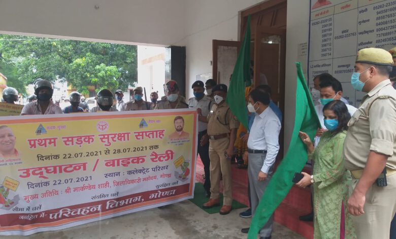 गोंडा । जिलाधिकारी मार्कण्डेय शाही ने 28 जुलाई तक चलने वाले सड़क सुरक्षा सप्ताह रैली को कलेक्ट्रेट से हरी झंडी दिखाकर रवाना कर कार्यक्रम का शुभारंभ किया। डीएम श्री शाही ने शुभारंभ के उपरांत कहा कि सड़क दुर्घटनाओं में मृत्यु दर एवं दुर्घटनाओं को कम करने तथा जन सामान्य के द्वारा वाहन चलाते हुए यातायात नियमों का पालन सुनिश्चित कराने के उद्देश्य से आज राष्ट्रीय सड़क सुरक्षा सप्ताह का शुभारंभ किया गया है जो आगमी 28 जुलाई तक चलेगा।