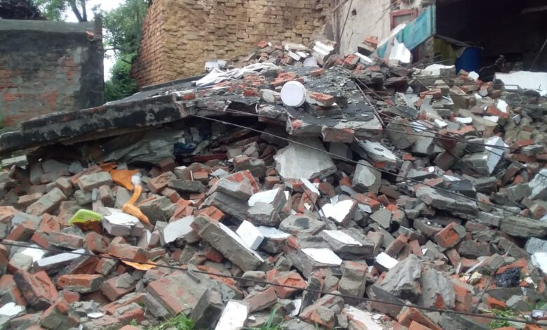 तेज बारिश से दो मंजिला मकान गिरा 2 बच्चे घायल