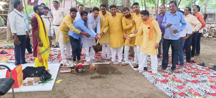 नए भवन निर्माण के लिए चेयरमैन द्वारा वैदिक मंत्रोच्चारण के बीच भूमि पूजन किया गया