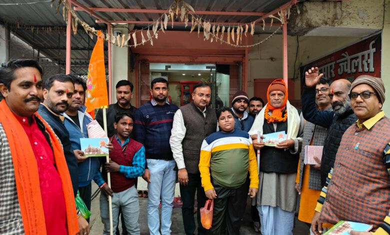 फतेहपुर। श्री राम जन्मभूमि प्राण प्रतिष्ठा समारोह समिति की बहुआ इकाई के पालक, समाजसेवी डॉ अनुराग श्रीवास्तव व बहुआ नगर के सभासद अरुण कुमार गुप्ता के नेतृत्व में बहुआ नगर में श्री राम मंदिर प्राण प्रतिष्ठा समारोह का पत्रक,भगवान राम का चित्र व पूजित अक्षत वितरण कर सभी से 22 जनवरी को दीपोत्सव मनाते हुए भजन,कीर्तन, सुंदरकांड व श्री रामचरितमानस पाठन हेतु निवेदन किया। मार्ग में साथ साथ भजन व जय श्री राम का उद्घोष करते हुए सभी लोग चल रहे थे। इस अवसर पर संजय श्रीवास्तव, सुरेश श्रीवास्तव,सर्वेश गुप्ता, आशीष श्रीवास्तव,हिमांशु श्रीवास्तव,अर्णव श्रीवास्तव सहित तमाम लोग उपस्थित रहे।