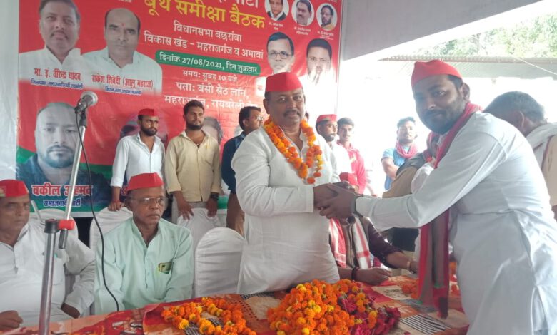 महराजगंज। आगामी विधानसभा चुनाव की तैयारियो को लेकर बछरावां विधानसभा क्षेत्र के समाजवादी पार्टी के पदाधिकारियों ने बूथ समीक्षा बैठक कर निर्वाचन सूची में जिन लोगों का नाम नहीं है उन्हें निर्वाचन सूची से जुड़ने के लिए प्रेरित किया, वही बूथ स्तर पर पार्टी पदाधिकारियों के साथ बैठक किया। बछरावां विधानसभा सीट से आने वाले आगामी विधानसभा चुनाव में पूर्व विधायक श्यामसुंदर भारती ने अभी से दिन रात मेहनत कर गांव गांव जाकर लोगों को समाजवादी पार्टी से जुड़ने के लिए प्रेरित करते हैं वही जन समस्याओं को भी सुनते हैं इसी को लेकर बूथ समीक्षा बैठक का आयोजन किया जिनमें बूथ स्तर के पदाधिकारियों से लेकर जिले स्तर तक के नेता उपस्थित रहे। अमित त्रिपाठी उर्फ मोनू ने जिला अध्यक्ष वीरेंद्र यादव का माल्यार्पण कर स्वागत किया। पूर्व विधायक श्यामसुंदर भारती ने कहा कि आने वाले विधानसभा चुनाव में हम सभी को एकजुट होकर काम करना है। और अधिक से अधिक संख्या में लोगों को समाजवादी पार्टी इस सरकार द्वारा कराए गए विकास कार्य एवं योजनाओं के बारे में लोगों को बता कर उन्हें जागरूक करना है एवं किसान विरोधी सरकार को इस बार सबक सिखाना है आने वाले चुनाव में बछरावां विधानसभा से समाजवादी पार्टी का ही विधायक बनना तय है ।इस मौके पर महराजगंज व अमावा सेक्टर के समाजवादी कार्यकर्ता सहित जिला अध्यक्ष वीरेंद्र यादव विधानसभा अध्यक्ष राकेश त्रिवेदी, ब्लॉक अध्यक्ष अमर यादव, पूर्व विधायक श्यामसुंदर भारती, पूर्व विधायक रामलाल अकेला, रोहित धोबी, आदित्य प्रजापति, राघवेंद्र शुक्ला, रविंद्र भारती व अन्य उपस्थित रहे।