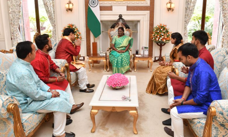 आजमगढ़ : श्रीमाननीया राष्ट्रपति महोदया श्रीमती दोपदी मुरूमु जी से मुलाकात हरिहरपुर घराना आजमगढ़ के वरिष्ठ कलाकार व संस्था प्रमुख हरिहरपुर घराना संगीत संस्थान आजमगढ़ व उनके साथ अजय मिश्र के गुरु जी के छोटे सुपुत्र अनुराग मिश्र,राहुल मिश्र, आयुष मिश्र,नितीश मिश्र व नितीश की धर्म पत्नी ज्योति मिश्रा आज मुलाकात कर के संगीत संबंधित विधा व लोक विधा के संदर्भ में देरों चर्चा किए।अजय मिश्र संस्था प्रमुख 25 वर्षों से हरिहरपुर कजरी महोत्सव कार्यक्रम आयोजित करते आये और पिछले वर्ष माननीय सांसद जी के सहयोग से आदरणीय मुख्यमंत्री महोदय जी व्दारा हर वर्ष 25 लाख धनराशि सहयोग हरिहरपुर कजरी महोत्सव कार्यक्रम में पास करा कर हर वर्ष हरिहरपुर कजरी महोत्सव कार्यक्रम आयोजित शालन व्दारा होने व समस्त लोक विधा के बारे में महोदया जी को अजय मिश्र ने अवगत कराया।