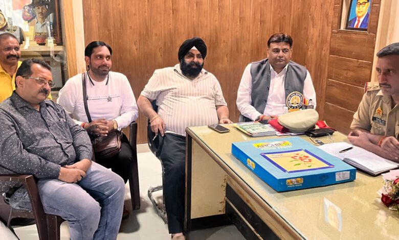 महानगर अध्यक्ष विवेक मनोचा व महानगर महामंत्री स.सुरेन्द्र मोहन सिंह चावला ने नवान्गतुक थाना प्रभारी सतेन्द्र नागर को अवगत कराया कि त्यौहारी सीजन चल रहा है। इसलिए बाजारों में अतिक्रमण एवं जाम जैसी समस्या न उत्पन्न हो इसलिए पुलिस दुकानों व सड़कों पर अवैध अतिक्रमण न होने दे तथा यातायात व्यवस्था को सुचारू रखे। उन्होंने बताया कि दीपावली पर्व निकट है इसलिए बाजारों में भीड़ होना स्वभाविक है। इसलिए बाजारों में उचित साफ सफाई की व्यवस्था करवायी जानी नितान्त आवश्यक है।