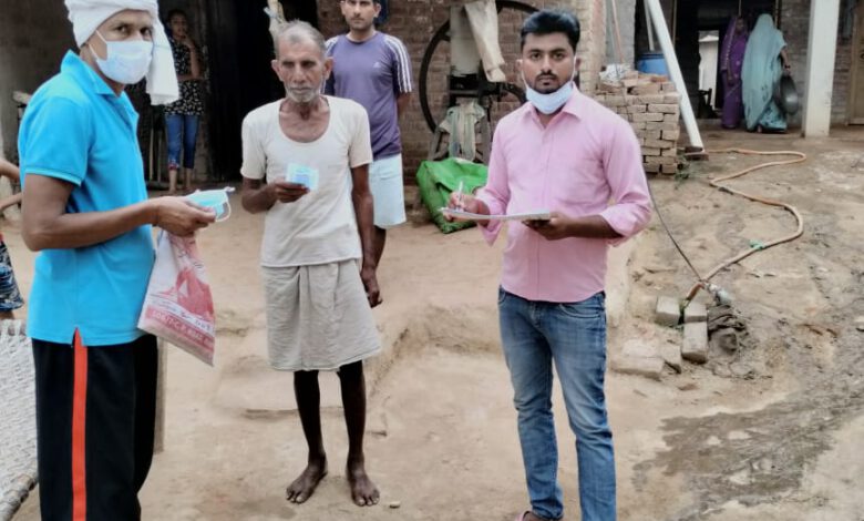 सुभद्रा फाउंडेशन के द्वारा लोगों के घर जाकर मास्क व कोविड-19 संबंधित जानकारी दी गई
