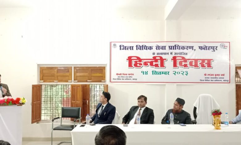फतेहपुर। अपर जिला जज/सचिव जिला विधिक सेवा प्राधिकरण,फतेहपुर ने बताया कि जनपद न्यायालय फतेहपुर में आज दिनांक-14.09.2023 को हिन्दी दिवस पर आयोजित संगोष्ठी के अवसर पर माननीय श्री रणंजय कुमार वर्मा, जनपद न्यायाधीश/अध्यक्ष जिला विधिक सेवा प्राधिकरण, फतेहपुर की अध्यक्षता में न्यायिक अधिकारीगण एवं अधिवक्तागण की उपस्थिति में विचार संगोष्ठी का आयोजन किया गया। इस संगोष्ठी का संचालन श्री महेन्द्र कुमार पासवान, सिविल जज सी0डि0 एफ0टी0सी0 द्वारा किया गया।